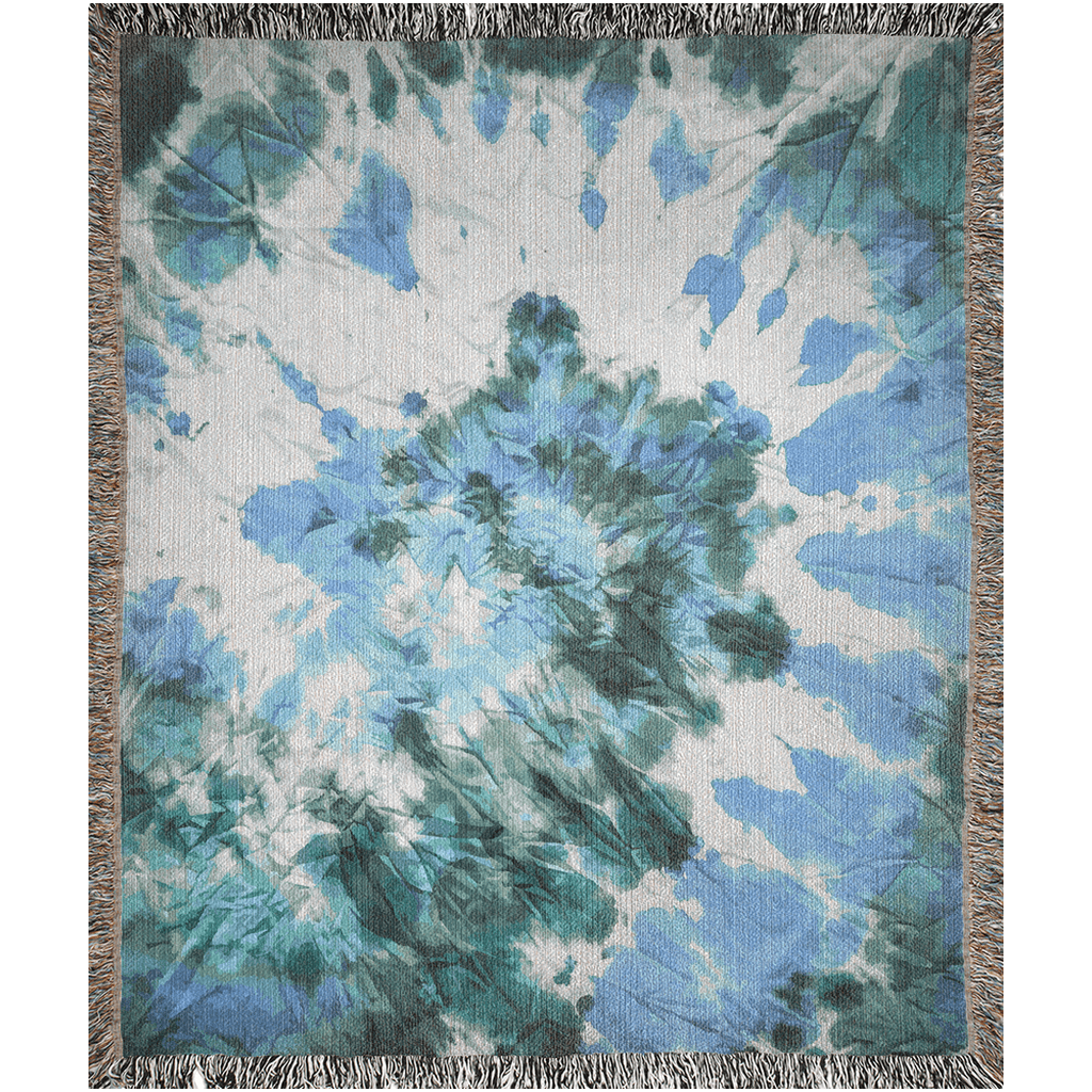 Embrace a touch of the psychedelic with our 100% cotton woven jacquard loom blanket, featuring a captivating green and blue tie-dye swirl. This mesmerizing design, reminiscent of the iconic '60s and '70s style, is perfect for adding a vibrant splash of color to your home. Whether you're lounging in the park, enjoying an outdoor concert, or just curling up with a good book, this cozy, soft blanket is your ideal companion. Its large size ensures you can wrap yourself in comfort and style, while its eye-catching pattern makes it a striking addition to any setting. Ideal for those who appreciate a blend of artistic flair and practical comfort, this blanket is not just a throw, but a statement piece that brings a nostalgic yet timeless vibe to your everyday life.
